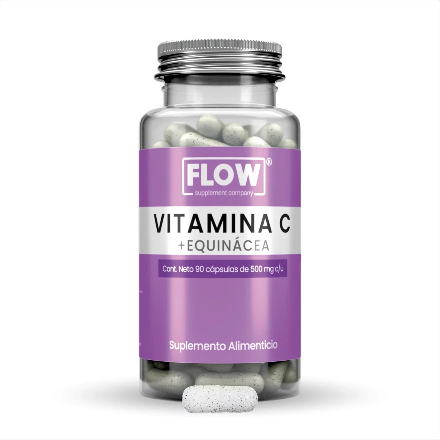 Vitamina C con Equinácea 100% de origen natural; libre de aditivos y Gluten free. Contiene 90 cápsulas de 500. mg c/u.